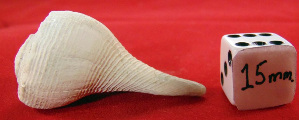 White whelk shell with the tip broken off – opens to the left when viewed from the bottom