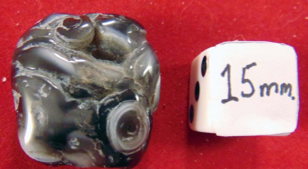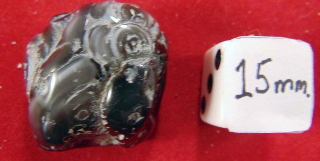 A polished black mass with silver highlights