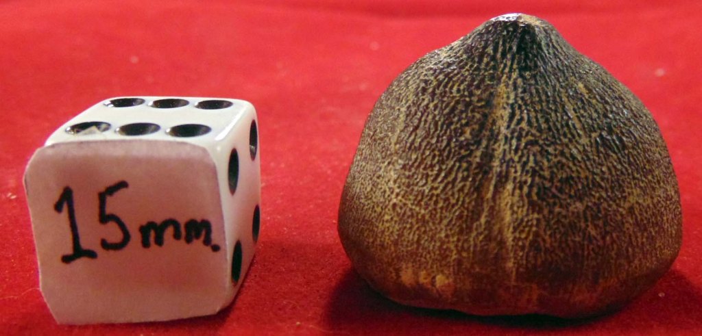 A large, dome shaped tooth with a bumpy texture and a small, nipple-like tip