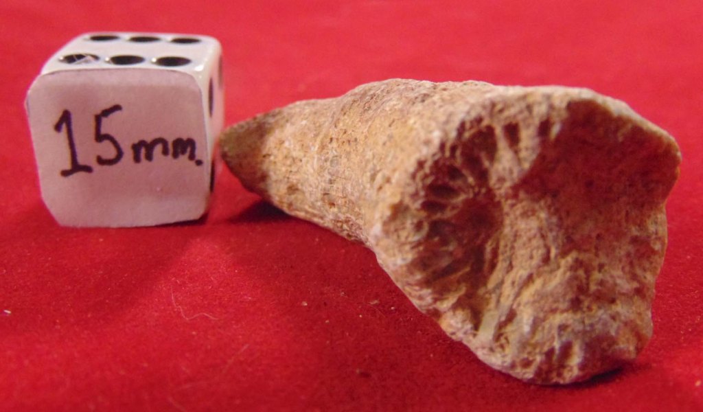 A brown, weathered stalk of horn coral.