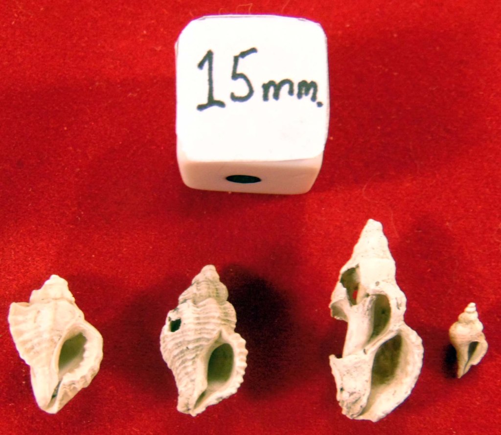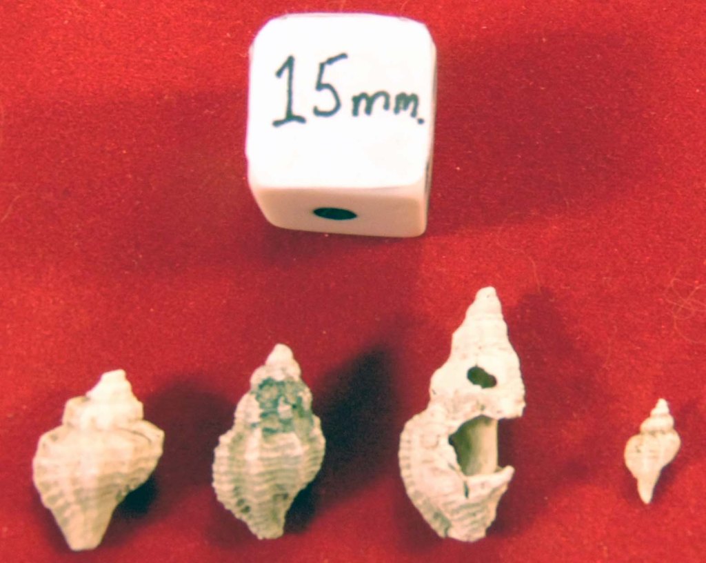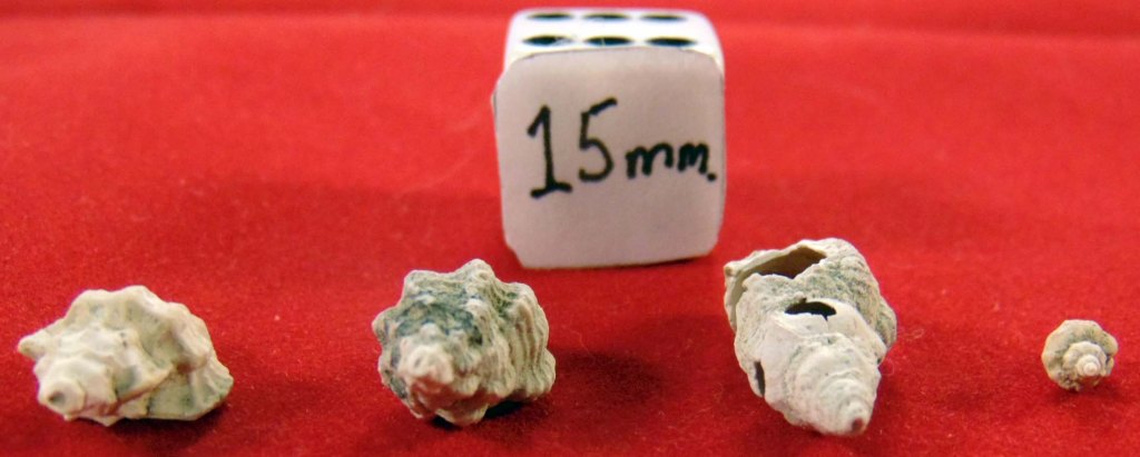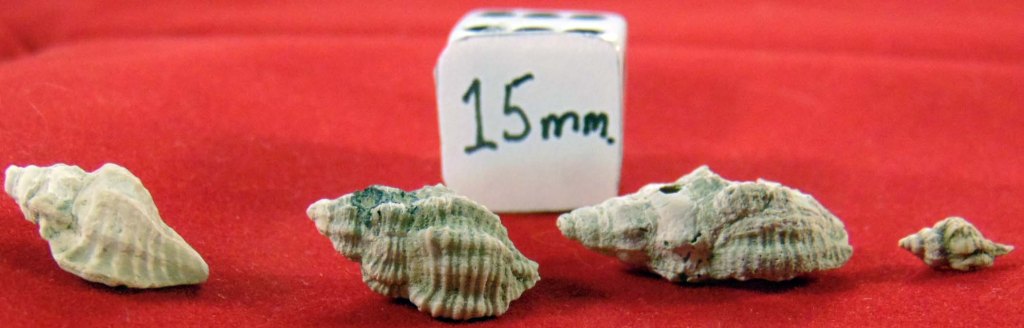 - Specimen 03: Small white shell with prominent ridges; opens to the right