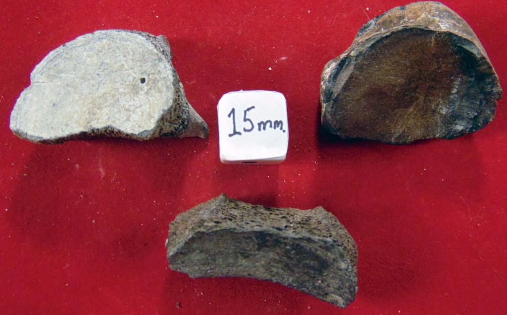 - Specimen 25: A cylindrical black bone that has a similar shape as a phalanx – the bottom half is worn away