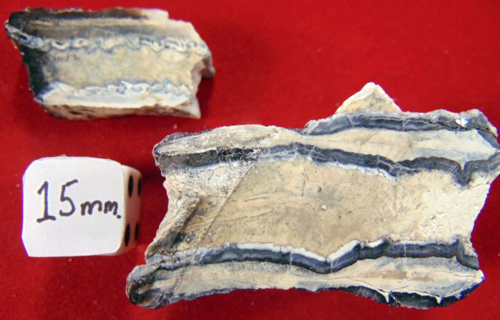 - Specimen 37: A smaller blue and white cross-section of tooth