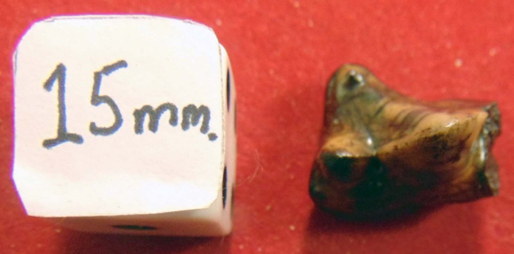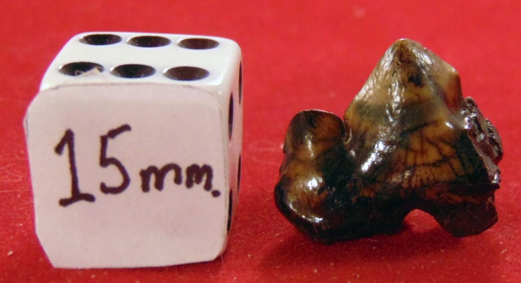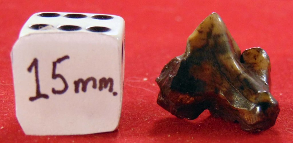 A partial upper carnassial tooth with colourful enamel