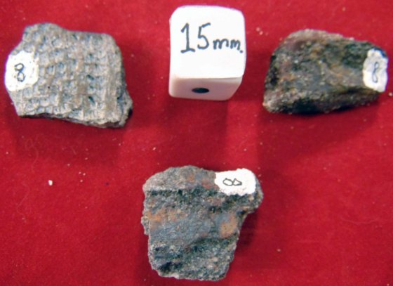 Conifer needle impressions (Pinopsida sp.) in clay from the Cretaceous period