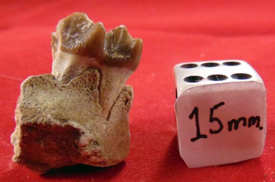 Oreodont tooth (Merycoidodontidae sp.) in matrix from the Miocene epoch