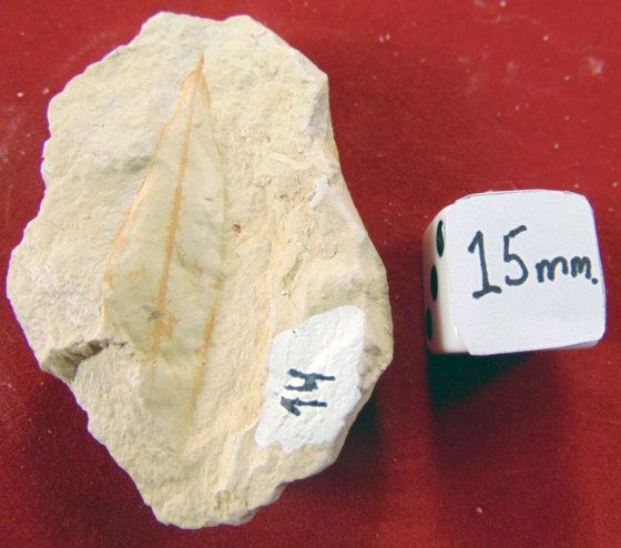 Willow leaf impressions (Salix sp.) in clay from the Cretaceous period